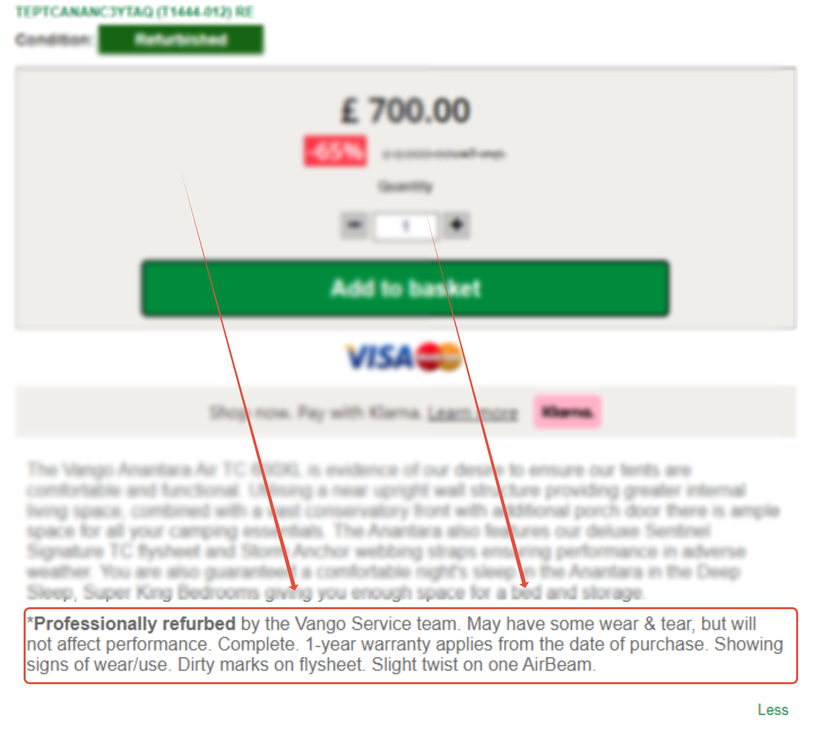 I.e. Dirty Marks, Small Patch on Flysheet etc.